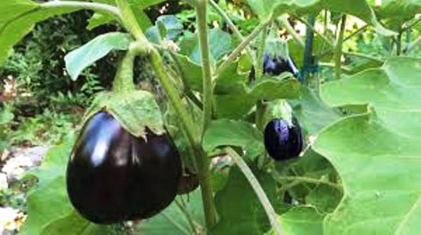 Harvest. Eggplants are ready for harvest when the fruit is glossy, firm, and full colored and not streaked with brown. Time from planting to harvest is 100 to 150 days from seed, 70 to 85 days from transplants. Harvest eggplant young before the flesh becomes pithy. The eggplant fruit grows on a sturdy stem; cut the fruit from the stem with a sharp knife.