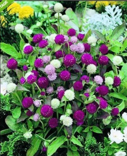 Seed tray preparation – Scatter the seeds over equal parts of sand, potting soil and peat moss mixed together. Water carefully. Prevent the soil from crusting by covering the seed tray with a plastic bag. This will hold in the moisture. Gomphrena seeds need light to germinate. Place the tray in a bright place, but not in direct sunlight as excessive sun exposure may damage the sprouts. Full sun will also keep the soil warm. Once the spouts begin to emerge, remove the cover.