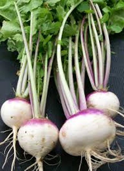 Harvesting: Turnips will be ready for harvest 30 days after sowing—full size in 40 days. Roots are smoothest when small. Harvest can begin when greens are 12” (30 cm) long and roots are 2-3” (5-7.5 cm) in diameter. For greens, harvest the outside leaves, leaving the central growth bud to re-sprout. Do not leave turnips in the ground past maturity; this will cause turnips to become woody and lose flavor. Turnips will keep in the refrigerator for 7-10 days in perforated bags. Greens can be wrapped in damp towel, then placed in a plastic bag, and kept in the refrigerator for a few days.