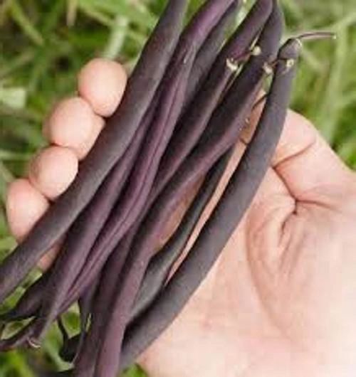 Straight, flat, bright purple pod to 17 cm, popular variety, prolific and harvests over many weeks, turns green when cooked, hence is called Magic Bean. 65-75 days.