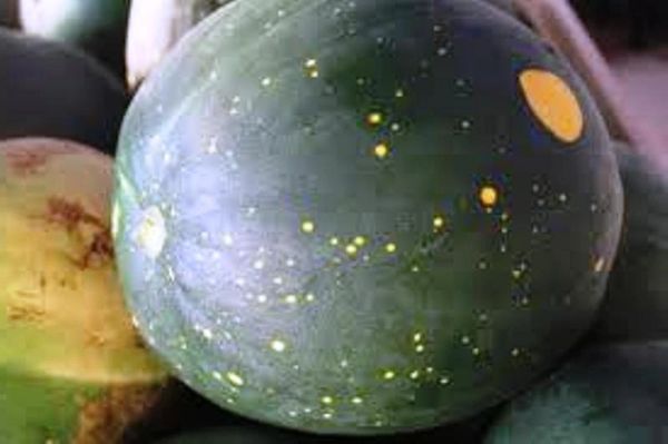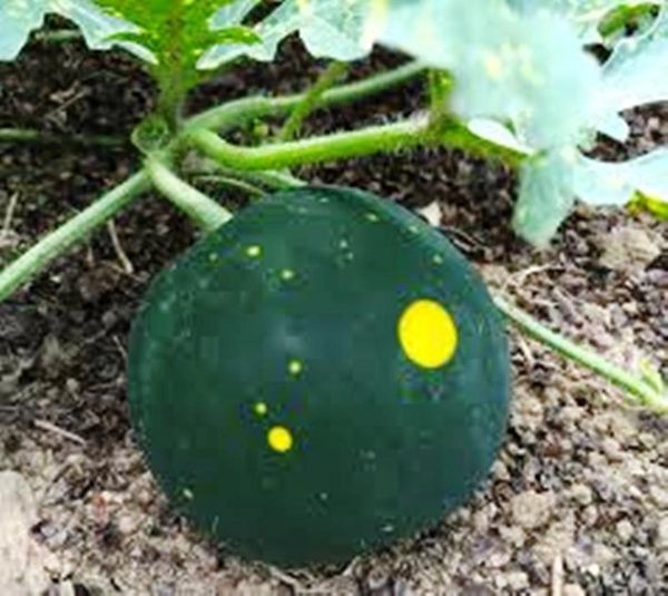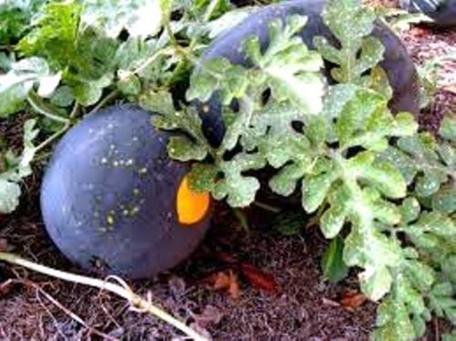 Bright red flesh, very sweet, thin tough skin, round, dark green speckled Moon & Star spots. and 5-6 kg,